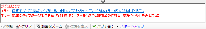 式を保存したときは、その式が有効かどうかが自動的にチェックされます。式を保存する前に、有効かどうかを自分で調べることもできます。
