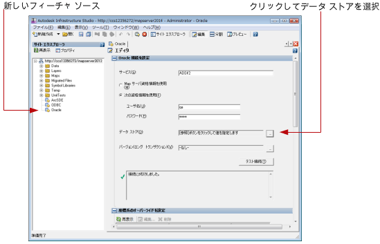 - データベースがユーザ ID とパスワードを認識するように設定されている場合は、[Map Server 資格情報を使用]を選択します。