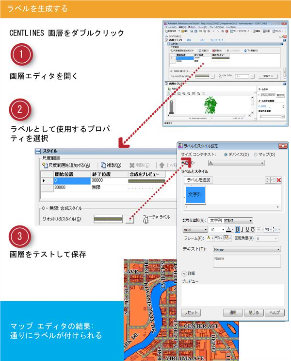 この実習では、マップの主要な道路に表示するラベルを定義します。