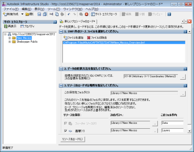 この手順では、ロードしたい 1 つまたは複数の DWF ファイルがあることを想定しています。 DWF ファイルをロードするには、ソース ファイルを[サイト エクスプローラ]にドラッグします。 Autodesk Infrastructure Studio では、新しいフィーチャ ソースだけでなく画層も自動的に作成されます。