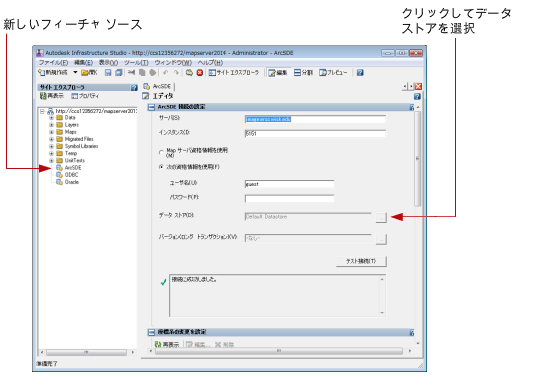 - データベースがユーザ ID とパスワードを認識するように設定されている場合は、[Map Server 資格情報を使用]を選択します。