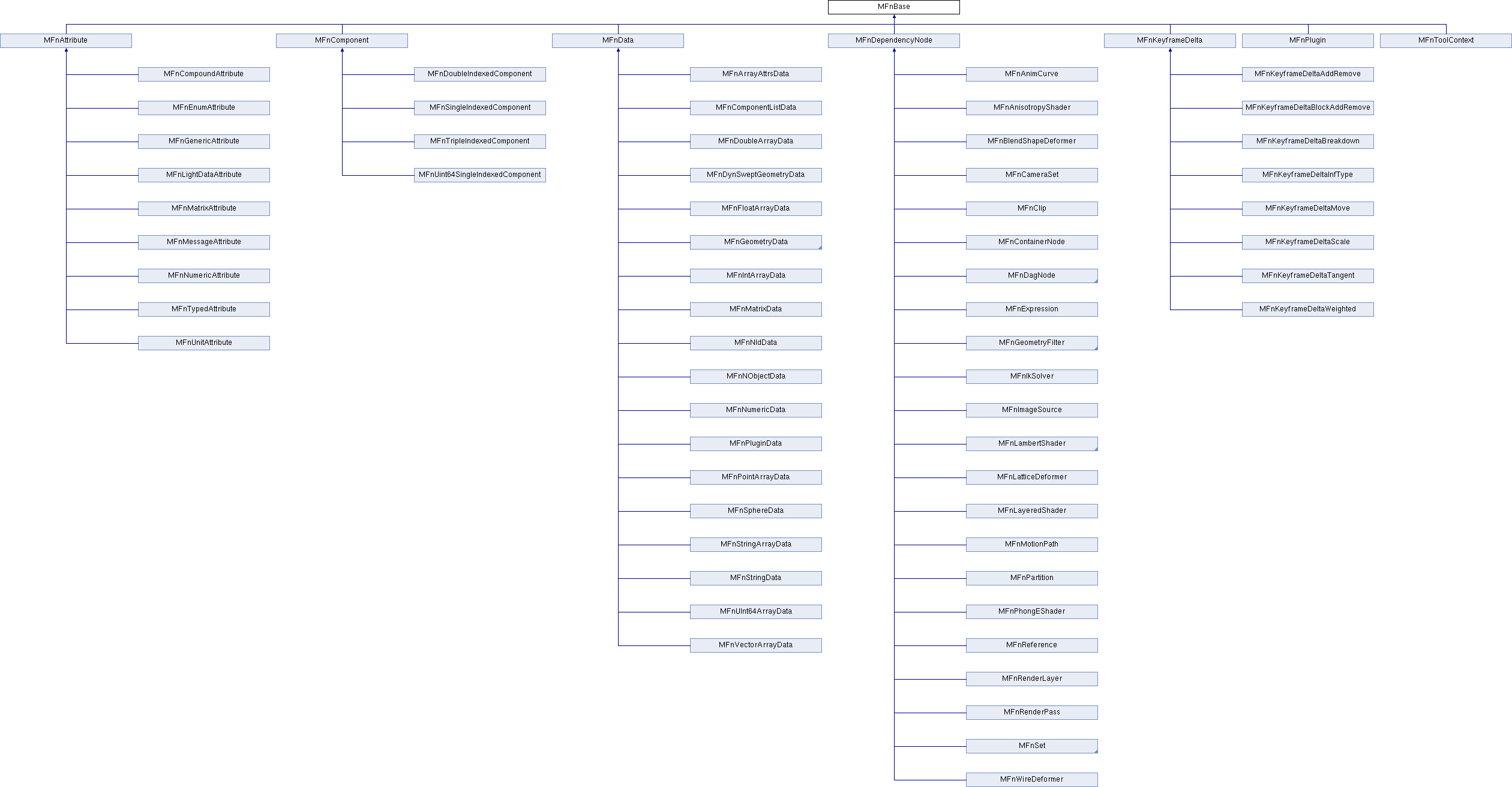 Inheritance diagram for MFnBase:Public Member Functions | |