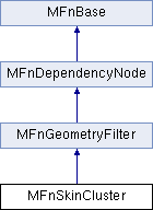 Inheritance diagram for MFnSkinCluster:Public Member Functions | |