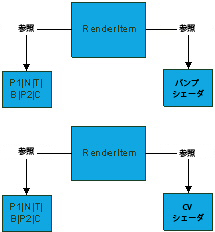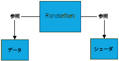 各レンダー項目は、シェーダとデータの両方を 1 つの単位として追跡します。シェーダとデータの両方を異なるレンダー項目で共有することができます。
