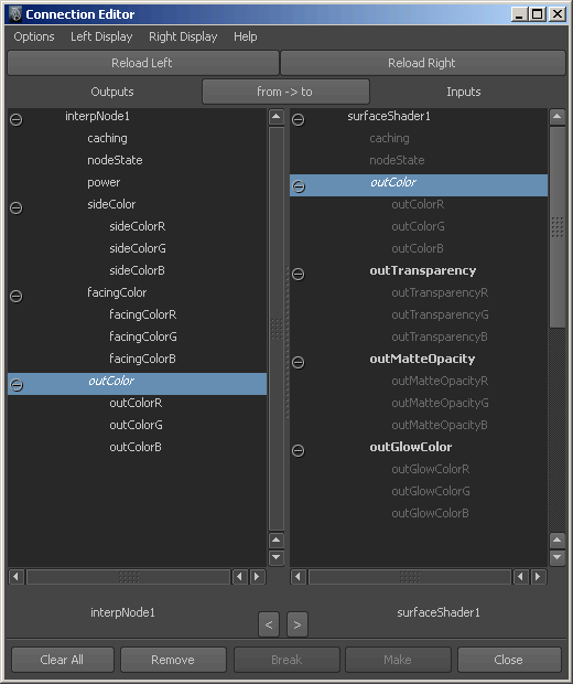 class InterpNode : public MPxNode { public: InterpNode(); virtual ~InterpNode(); virtual MStatus compute( const MPlug&, MDataBlock& ); static void * creator(); static MStatus initialize(); static MTypeId id; protected: static MObject InputValue; static MObject color1R,color1G,color1B,color1; static MObject color2R,color2G,color2B,color2; static MObject aNormalCameraX, aNormalCameraY, aNormalCameraZ, aNormalCamera; static MObject aPointCameraX, aPointCameraY, aPointCameraZ, aPointCamera; static MObject aOutColorR, aOutColorG, aOutColorB, aOutColor; }; MObject InterpNode::InputValue; MObject InterpNode::color1R; MObject InterpNode::color1G; MObject InterpNode::color1B; MObject InterpNode::color1; MObject InterpNode::color2R; MObject InterpNode::color2G; MObject InterpNode::color2B; MObject InterpNode::color2; MObject InterpNode::aNormalCameraX; MObject InterpNode::aNormalCameraY; MObject InterpNode::aNormalCameraZ; MObject InterpNode::aNormalCamera; MObject InterpNode::aPointCameraX; MObject InterpNode::aPointCameraY; MObject InterpNode::aPointCameraZ; MObject InterpNode::aPointCamera; MObject InterpNode::aOutColorR; MObject InterpNode::aOutColorG; MObject InterpNode::aOutColorB; MObject InterpNode::aOutColor;