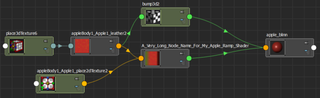 ノード名が短く表示されるように、ノード名のネームスペースを表示しないようにすることもできます。表示 > ネームスペースの表示(Display > Show Namespace)を無効にして、ネームスペースがノード名とともに表示されないようにします。たとえば、Namespace1:pConeShape1 が ...:pConeShape1 と表示されるようになります。