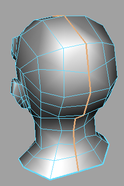 - パース ビューで、額の上部から首の付け根までの後頭部に沿ってエッジのパスを選択します。