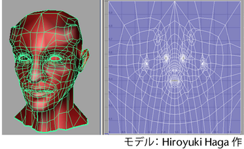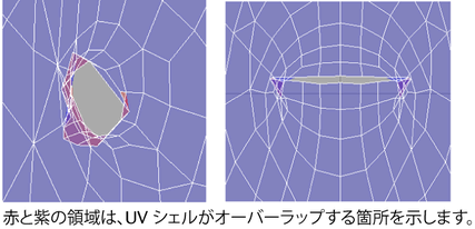 をオンにします。たとえば、このモデルの目や口角の周りの UV シェルは、オーバーラップする原因となります。