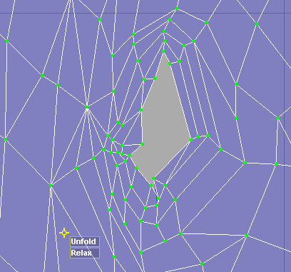 UV スムーズ ツール(Smooth UV Tool)を使用すると、UV シェルをリラックスさせる度合いを視覚的に判断できます。ただし、この方法を使用しても最適化(Optimize)オプション(ポリゴン > 最適化(Polygons > Optimize))を使用しても、UV シェルを完璧にすることはほとんどできません。