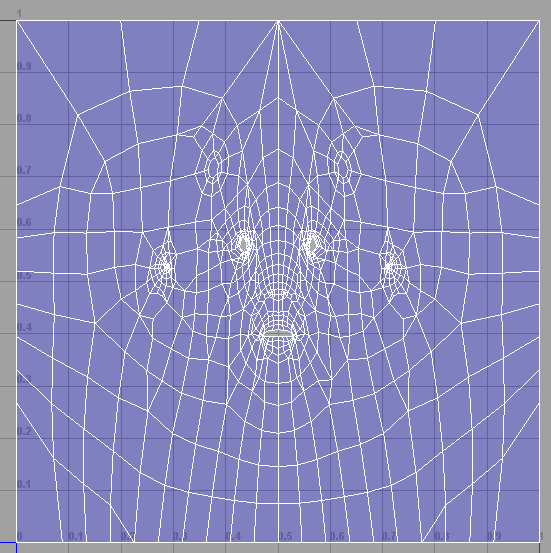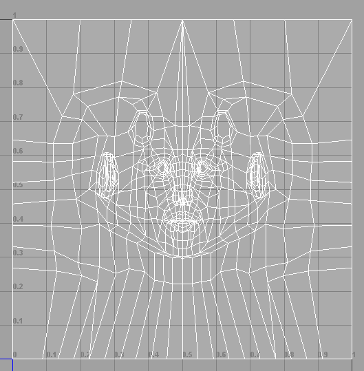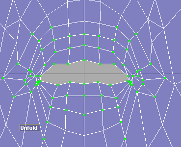 UV スムーズ ツール(Smooth UV Tool)を使用して、UV シェル全体を展開することもできます。この場合は、額の上部を除いたすべての UV を選択し、