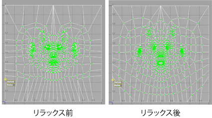 - リラックスさせたシェル内の細かい不備を確認するには、シェーディング UV の表示(Shaded UV Display)