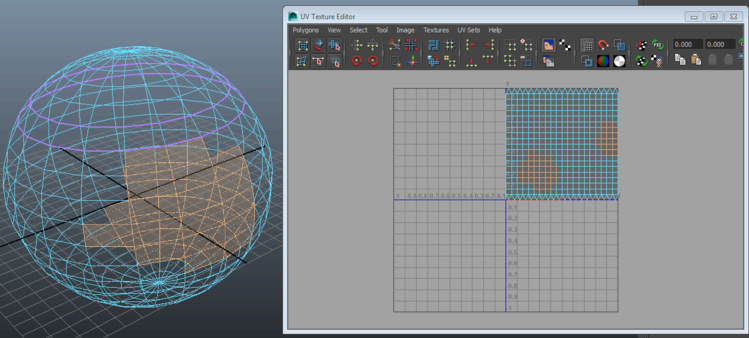 ハード エッジが表示されると(ディスプレイ > ポリゴン > ハード エッジ(Display > Polygons > Hard Edges))、すべてのコンポーネントが UV テクスチャ エディタ(UV Texture Editor)に表示され、任意のコンポーネント タイプを選択することができます。