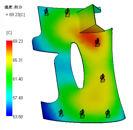 このタスクでは、成形品の温度結果を解釈します。これらの結果は、成形サイクル全体を通しての、成形品表面の平均温度を表します。