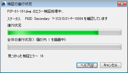 図面ごとの検証の進行状況と、検証しているすべての図面全体の検証の進行状況を表示します。