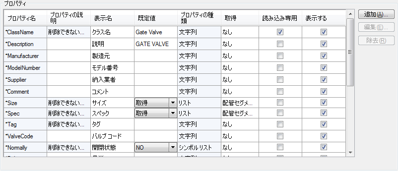 コンポーネントまたはラインの定義を P&ID 図面に配置するときに使用する既定値を定義します。プロパティ設定時に他のプロパティの値を取得するには、ドロップダウン リストで[取得]または[初回時のみ]を選択します。選択内容により、値は常にソースから取得されるか、または初期化の際に 1 度だけ取得されます。