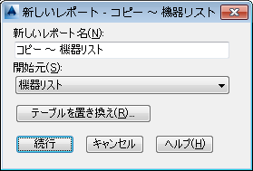 - [新しいレポート]ダイアログ ボックスで、新しいレポートの名前を入力します(例: 新しい機器リスト)。