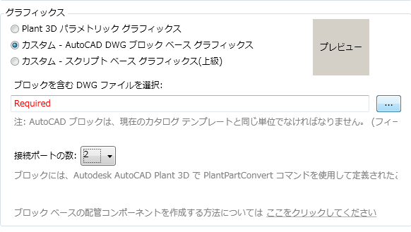 カタログ テンプレートに、コンポーネント グラフィックスを指定します。パラメトリック ベースおよびブロック ベースのグラフィックスがサポートされています。