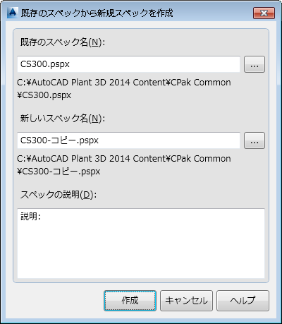 [既存のスペックからスペックを作成]ダイアログ ボックス
