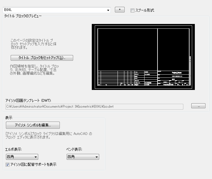 このボタンをクリックすると、AutoCAD のブロック エディタで IsoSymbolStyles.dwg が開かれ、アイソメ図ブロックを参照して編集することができます。ブロック エディタを閉じると、[プロジェクト セットアップ]ウィンドウに戻ります。