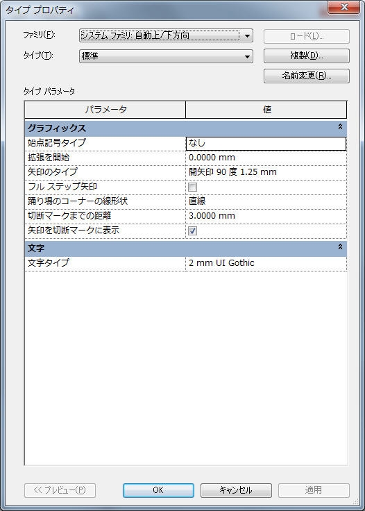 StairsPath は StairsPathType を持っています。階段パス タイプは、[自動上/下方向]および[固定された上方向]の 2 つの定義済みシステム ファミリから使用できます。これら 2 つのタイプに使用可能なプロパティは、FullStepArrow および DistanceToCutMark などの StairsPathType クラスのプロパティとして使用できます。