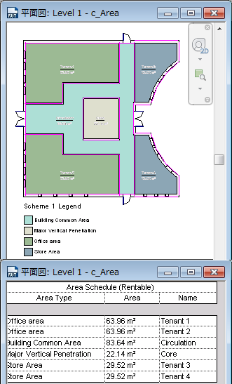 エリアを平面図に追加すると、そのエリアに関する情報がプロジェクトに保存されます。この中には、エリア名や使用法など、エリア プロパティを使用して追加する情報を含めることができます。「