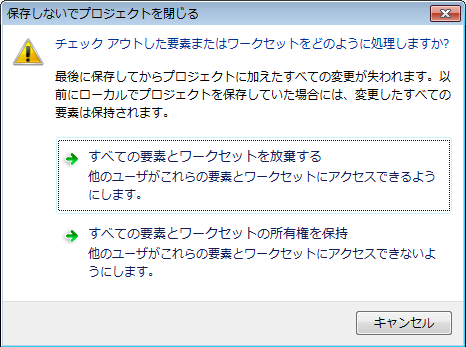 ワークシェアリング プロジェクトに変更を保存せずにローカル モデルを閉じると、[変更は保存されませんでした]ダイアログが表示されます。