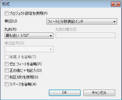 既定では、[プロジェクト設定を使用]オプションはオンになっています。これは、プロジェクトの[単位]設定に従って数値が表示されることを意味しています。「プロジェクトの単位」を参照してください。