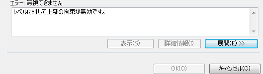 このメッセージは無視できる場合もあります。場合によっては、Revit が最後に行った操作をキャンセルするよう求めることがあります。ダイアログが適切な操作を示します。