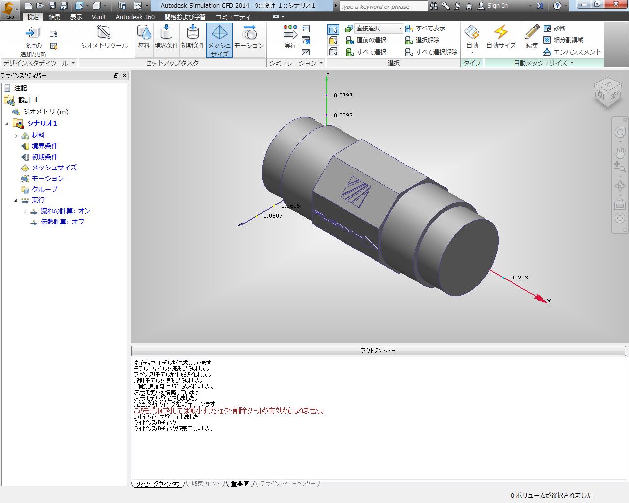 C:¥Documents and Settings¥All Users¥Application Data¥Autodesk¥Simulation CFD <バージョン>¥Tutorials¥Quick Start¥Flow Control に移動します。