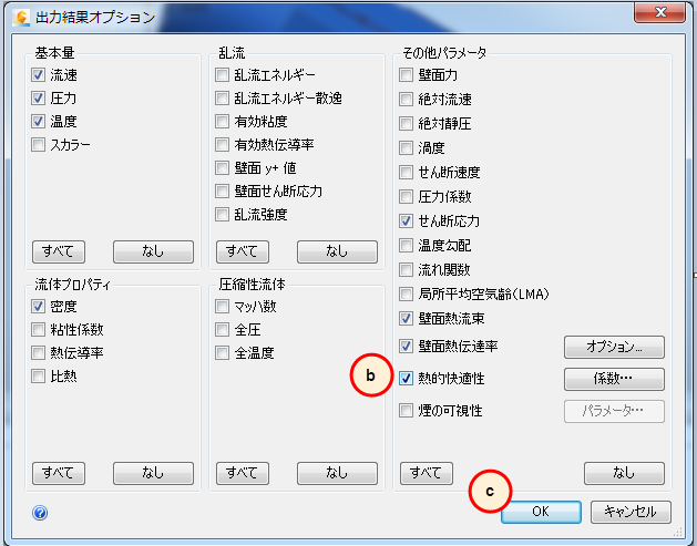 - b. [出力結果オプション]ダイアログで、[熱的快適性]チェックボックスをオンにします。