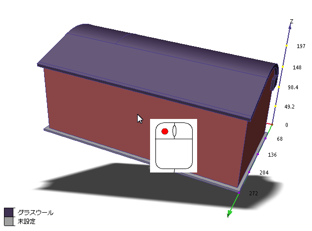 既定では、空気部品は壁面部品でブロックされるので見えません。