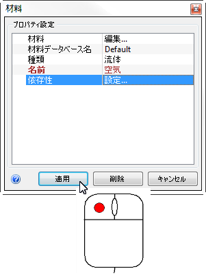 4. [材料]クイック編集ダイアログで、[種類]が[流体]で、[名前]が[空気]であることを確認します。