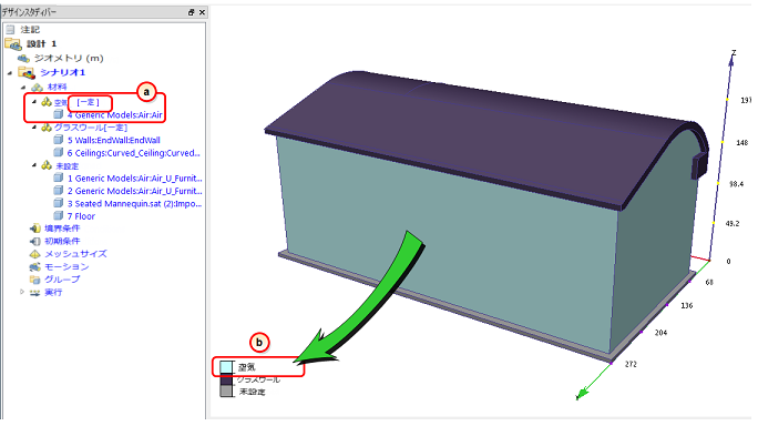 9. 空気材料が正しく割り当てられていることを確認するには、デザイン スタディ バーと部品の色付けを調べます。