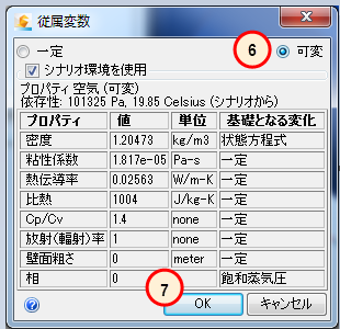 6. [従属変数]ダイアログで[可変]をクリックします。