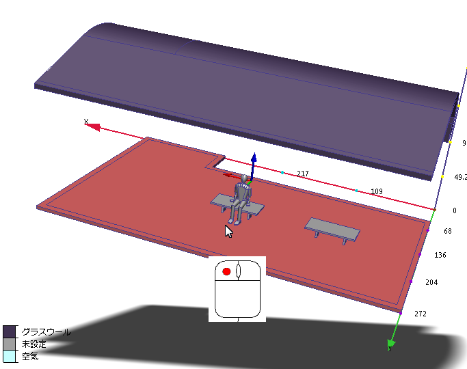 1. 床にアクセスするには、[Ctrl]を押しながら、空気部品上でマウスの中央ボタンをクリックします。