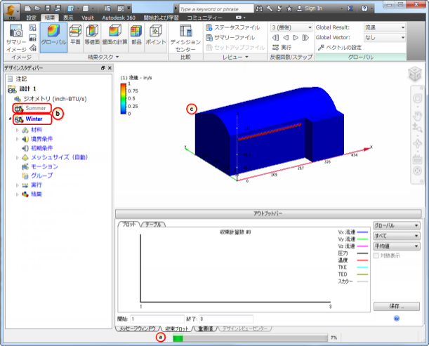 - c. 結果が計算されると Autodesk® Simulation CFD に表示されます。