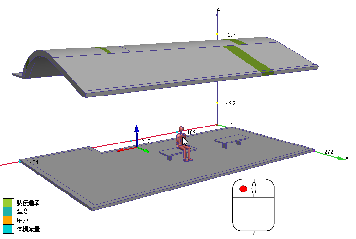 ここでは、実際の人間における熱的効果のシミュレーションを行っているので、座っている人が平均的に発する熱を有効にする必要があります。