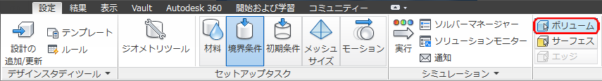 1. 選択モードを変更するには、[設定]タブ > [選択]パネル > [ボリューム]の順にクリックします。