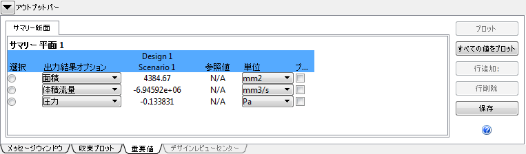 このステップでは、ディシジョンセンターのサマリー平面と重要値を使って現在の動作点での体積流量を評価します。