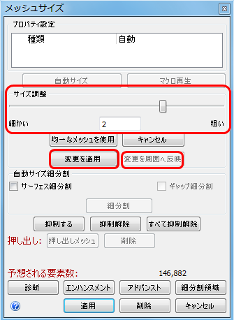 - 自動メッシュサイズ状況依存パネルで編集をクリックします: