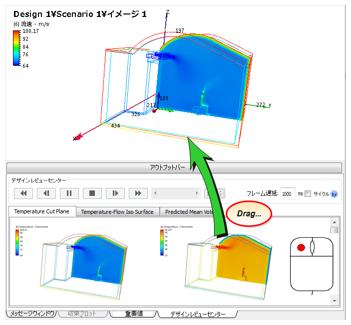 6. ディシジョン センターで、[Temperature Cut Plane]サマリー イメージをアクティブにします。