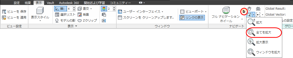 - b. イメージが拡大表示されている場合は、[表示]タブ > [ナビゲート]パネル > [拡大] > [すべてを拡大]をクリックして、元の状態に縮小表示します。(または、マウスのスクロール ホイールを回転させます)。