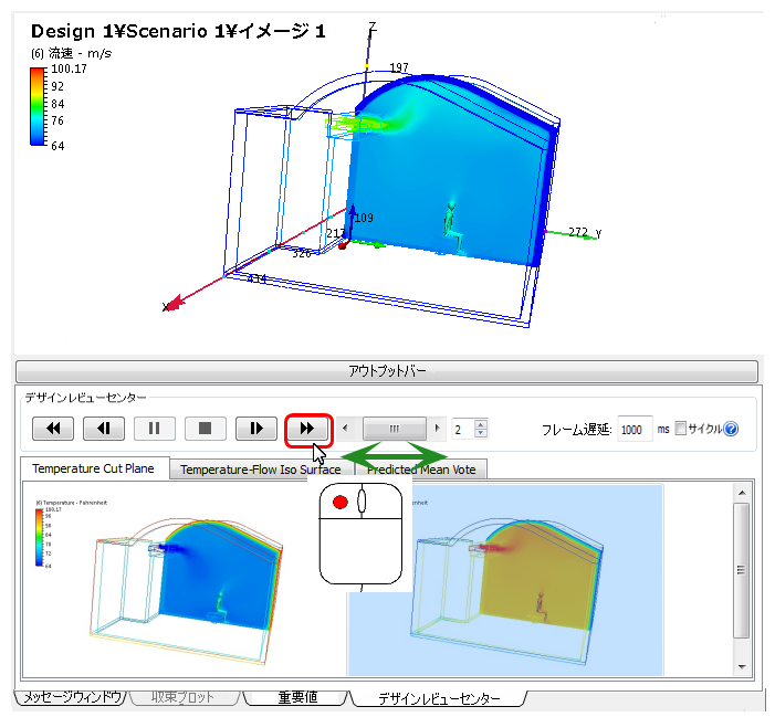 注: [再生]をクリックすると、グラフィックス ウィンドウに 2 つのシナリオが交互に表示されます。これは、シミュレーションを直接比較できる非常に便利な方法です。