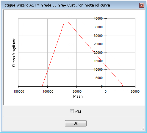 をクリックすると、データがグラフィカルに表示され、疲労解析ウィザードに入力している材料データを視覚的に確認できます。