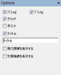 X および Y の尺度を線形または対数とするかを設定するには、[オプション]タブを使用します。