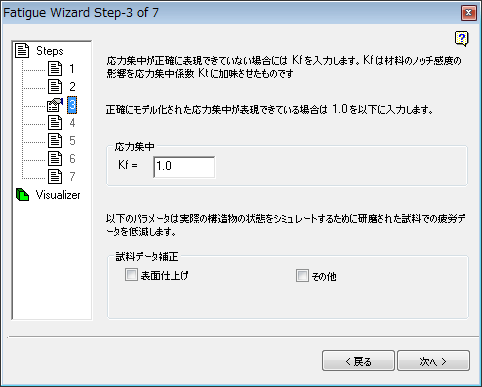 疲労解析ウィザードのステップ 3 で、次のように表示されているボックスに Kf 値を入力します。