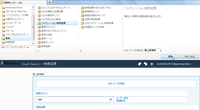 サイトの別のページの代替検索ソースとして Vault を追加する場合は、次の手順を実行します。