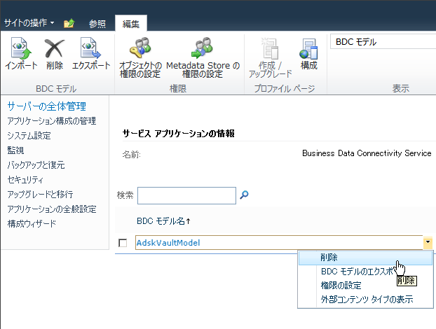 SharePoint から AdskVaultModel.bdcm ファイルをエクスポートする