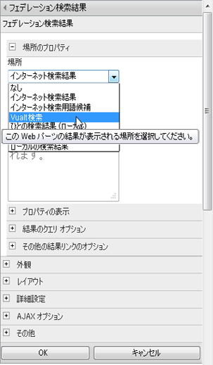 [場所のプロパティ]を展開して、[結果]を設定します。