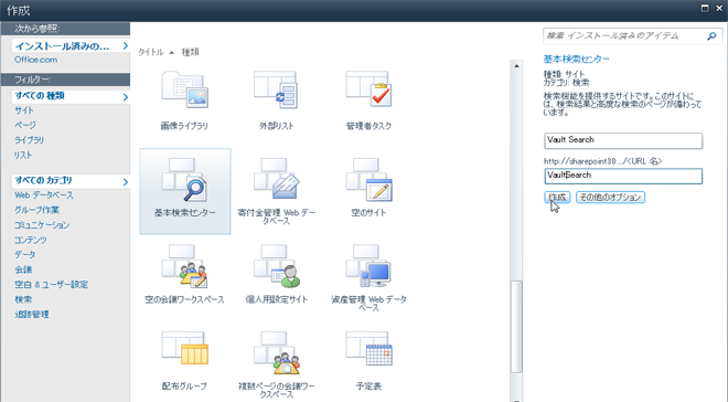 Vault が Vault 内のファイルを特定することができるようにするため、検索サイトを設定する必要があります。